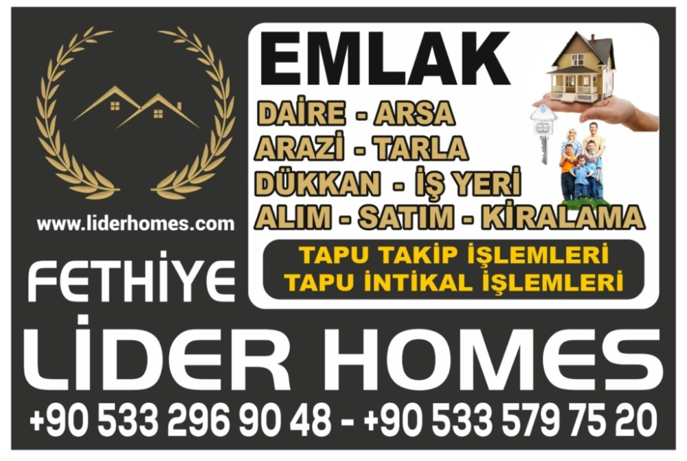 Fethiye Lider Homes olarak hedefimiz; yılların bilgi birikimi ve deneyimi ile profesyonel hizmet anlayışı içerisinde siz değerli müşterilerimize hakkettiği üstün...