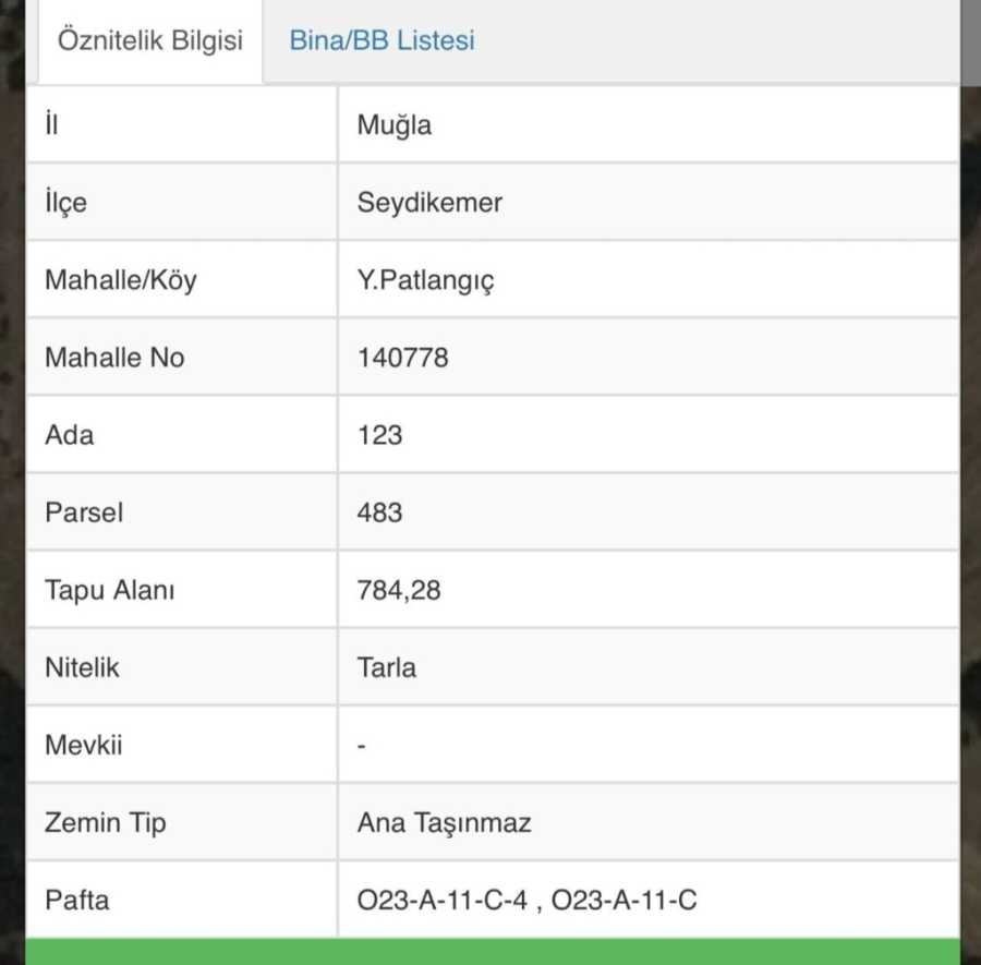 Muğla’nın Seydikemer ilçesi Y.Patlangıç Mahallesi’nde bulunan 784,28 m² büyüklüğündeki tarlamız satışa sunulmuştur. Ana taşınmaz niteliğindeki bu arazi, yatırım veya tarımsal kullanım için değerlendirilebilir.